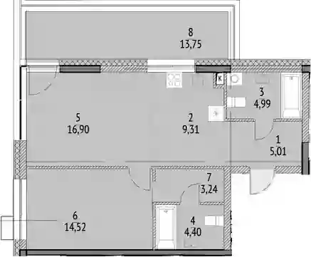 30 865 439 ₽2-к.квартира, 60.8 м², 5 эт.