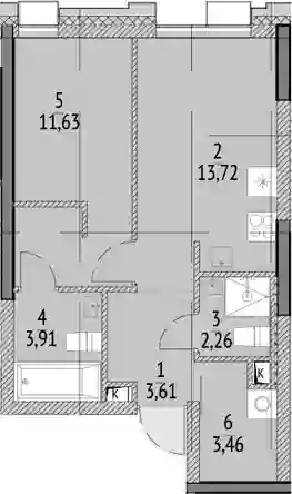 1-к.квартира, 38.59 м², 13 эт. в ЖК N'ICE LOFT Корпус 6