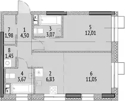 2-к.квартира, 44.56 м², 16 эт. в ЖК N'ICE LOFT Корпус 6