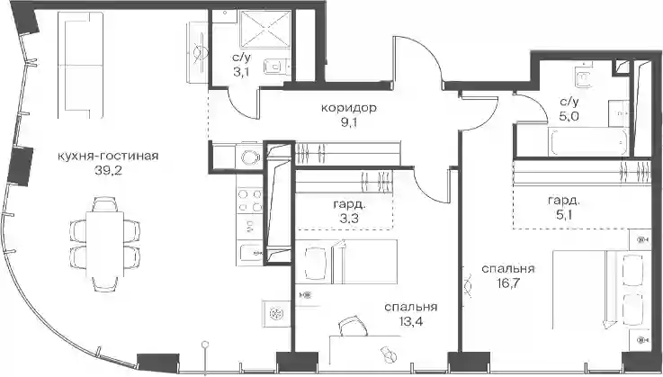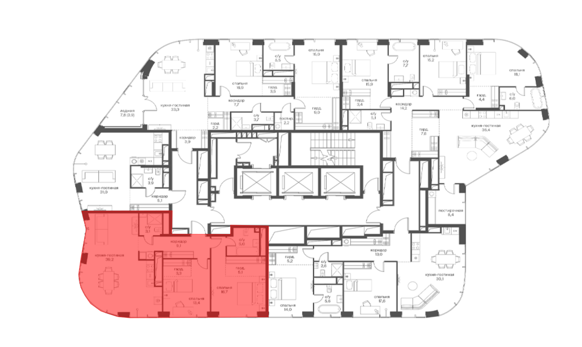 В проекте представлены студии и квартиры с 1–5 комнатами площадью от 34 до 264 кв. м. Доступны уникальные планировочные решения: лоты с террасами, лоджиями, окнами в ванной и панорамными видами на Москву-Сити. В квартирах установлены панорамные окна из алюминиевого профиля премиум-класса. Жилье передается без отделки. Предусмотрена система умного дома.