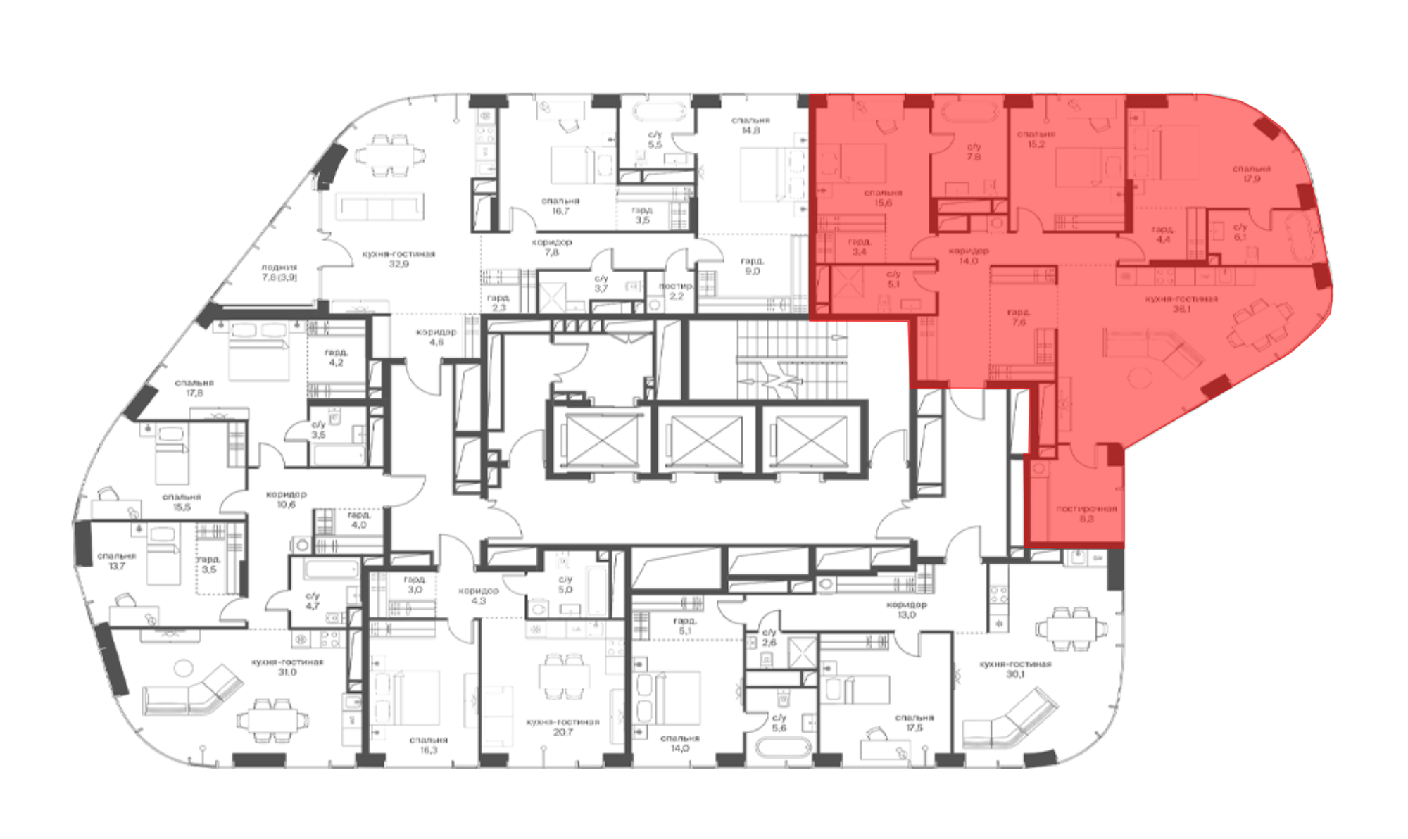 170 179 200 ₽3-к.квартира, 136.8 м², 36 эт.