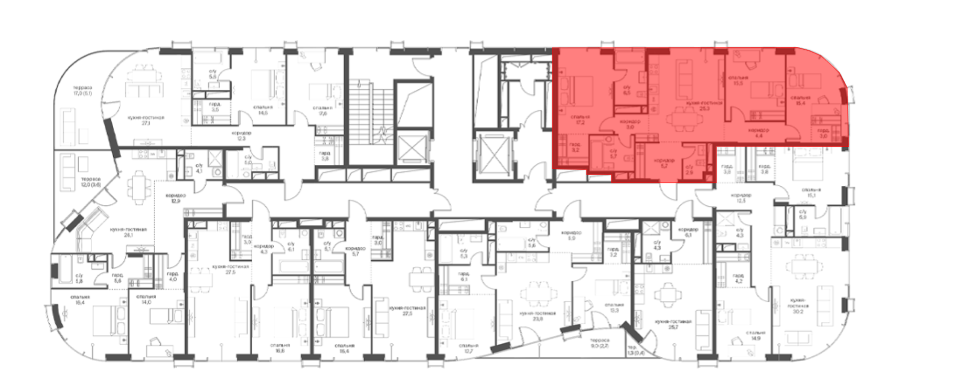 В проекте представлены студии и квартиры с 1–5 комнатами площадью от 34 до 264 кв. м. Доступны уникальные планировочные решения: лоты с террасами, лоджиями, окнами в ванной и панорамными видами на Москву-Сити. В квартирах установлены панорамные окна из алюминиевого профиля премиум-класса. Жилье передается без отделки. Предусмотрена система умного дома.