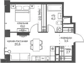 1-к.квартира, 48.9 м², 12 эт. в ЖК Начало Корпус 7