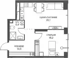 1-к.квартира, 55.2 м², 23 эт. в ЖК Начало Корпус 7