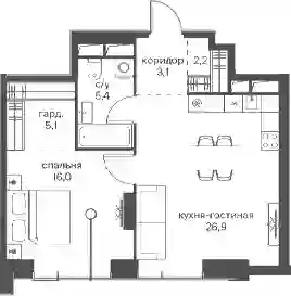 65 395 000 ₽1-к.квартира, 55 м², 6 эт.