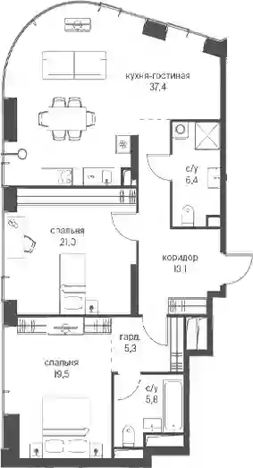 2-к.квартира, 108.5 м², 31 эт. в ЖК Начало Корпус 7