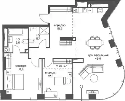 2-к.квартира, 118.6 м², 22 эт. в ЖК Начало Корпус 7