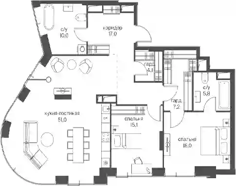 В комплексе предложен большой выбор элитных лотов: от функциональных однокомнатных квартир до семейных резиденций и пентхаусов со вторым светом. Есть и редкие форматы: с окнами в ванных, молированным угловым остеклением, возможностью установки камина. В квартирах спроектированы панорамные окна «в пол» и двухстворчатые двери. В более чем 50% квартир предусмотрены террасы, лоджии и балконы. Квартиры сдаются без отделки и внутренних перегородок.