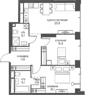 103 334 400 ₽2-к.квартира, 89.7 м², 15 эт.