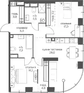106 136 600 ₽2-к.квартира, 88.3 м², 22 эт.
