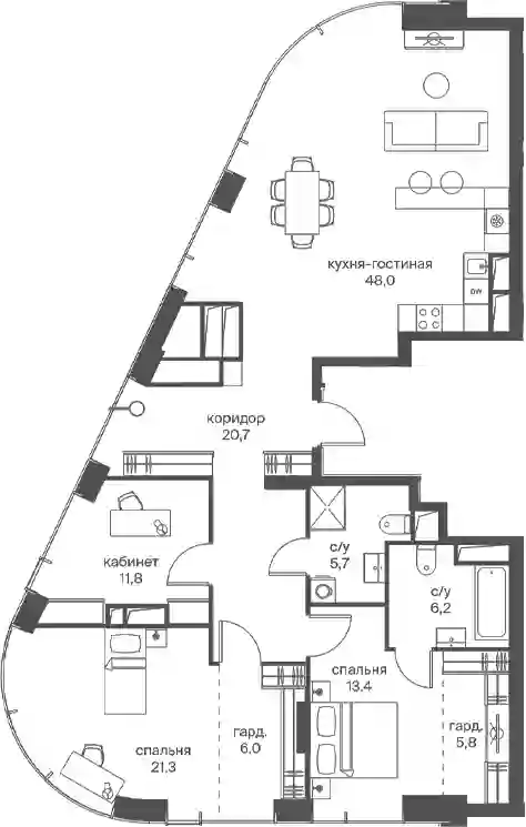 3-к.квартира, 138.9 м², 47 эт. в ЖК Начало Корпус 7