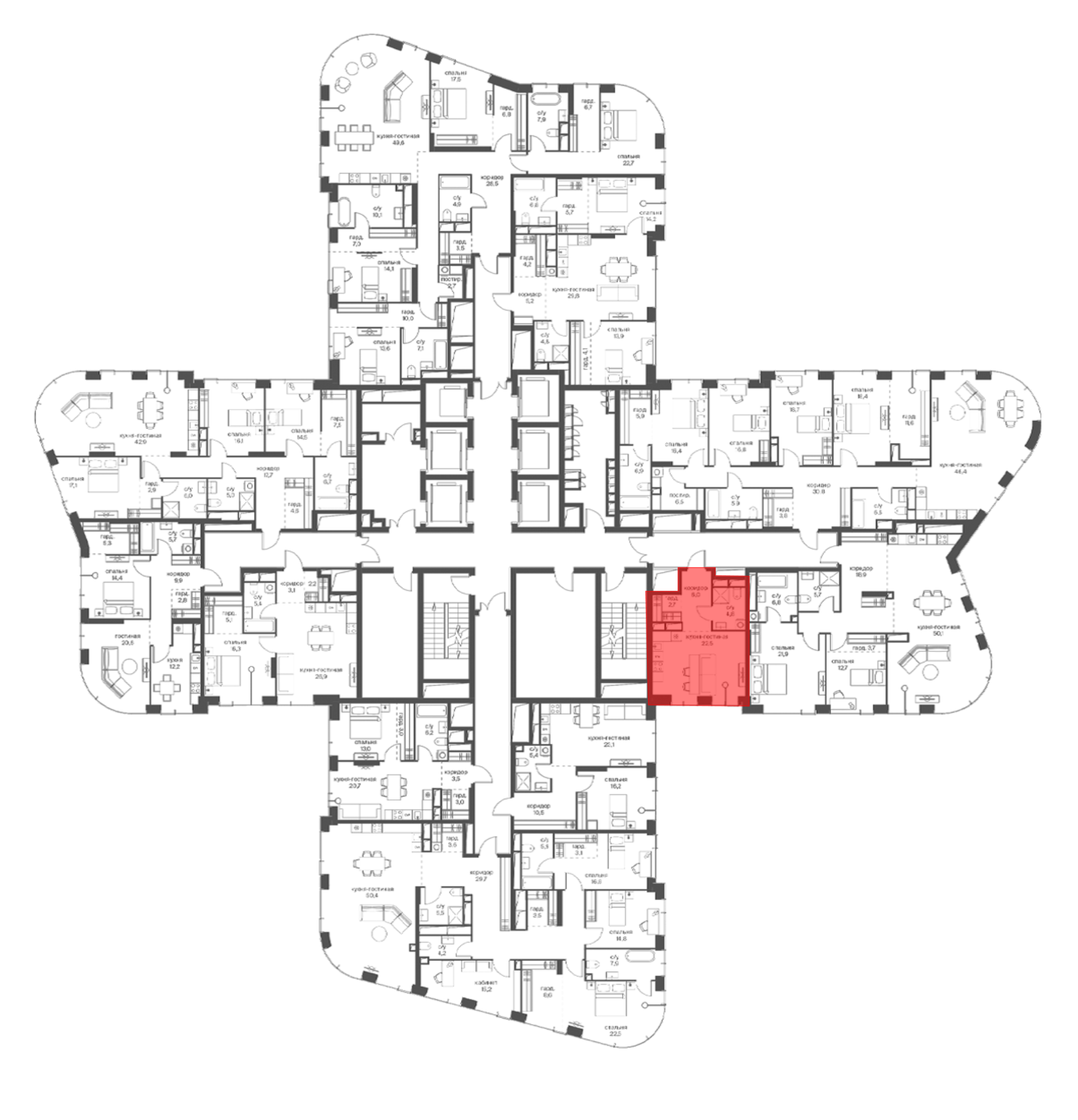 В комплексе предложен большой выбор элитных лотов: от функциональных однокомнатных квартир до семейных резиденций и пентхаусов со вторым светом. Есть и редкие форматы: с окнами в ванных, молированным угловым остеклением, возможностью установки камина. В квартирах спроектированы панорамные окна «в пол» и двухстворчатые двери. В более чем 50% квартир предусмотрены террасы, лоджии и балконы. Квартиры сдаются без отделки и внутренних перегородок.
