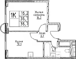 1-к.квартира, 36.7 м², 16 эт. в ЖК Nametkin Tower Корпус 1