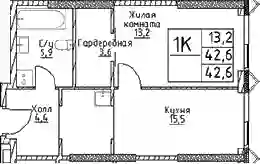 14 227 426 ₽2-к.квартира, 42 м², 22 эт.