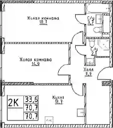 2-к.квартира, 70.7 м², 24 эт. в ЖК Nametkin Tower Корпус 1