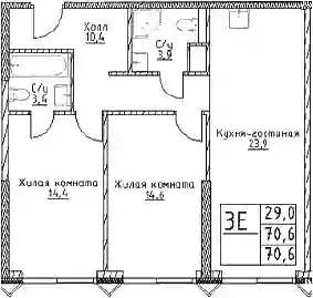 3-к.квартира, 70.6 м², 8 эт. в ЖК Nametkin Tower Корпус 1