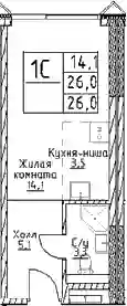 14 513 650 ₽Студия, 27.65 м², 3 эт.