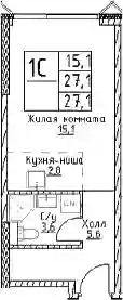 Студия, 27.1 м², 12 эт. в ЖК Nametkin Tower Корпус 1