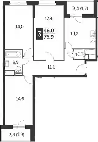 23 559 200 ₽3-к.квартира, 78.4 м², 17 эт.