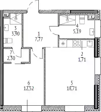 2-к.квартира, 52.1 м², 15 эт. в ЖК N'ICE LOFT Корпус 1