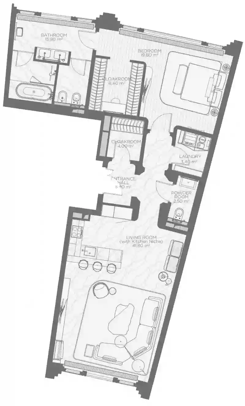 В проекте каждая квартира и каждое планировочное решение уникальны. В комплексе разместятся роскошные квартиры, двухуровневые жилые резиденции и роскошные пентхаусы. Также есть двух- и трехэтажные квартиры с патио и отдельным входом и таунхаусы. Из части квартир открываются панорамные виды на Кремль. Будущим резидентам квартиры предлагаются с подчистовой отделкой White Box Deluxe. В качестве дополнительной опции можно выбрать вариант с финишной авторской отделкой.