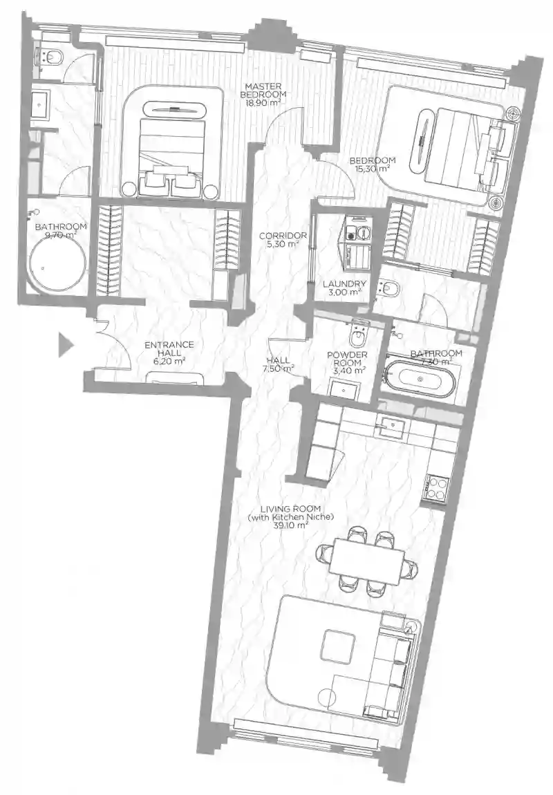 В проекте каждая квартира и каждое планировочное решение уникальны. В комплексе разместятся роскошные квартиры, двухуровневые жилые резиденции и роскошные пентхаусы. Также есть двух- и трехэтажные квартиры с патио и отдельным входом и таунхаусы. Из части квартир открываются панорамные виды на Кремль. Будущим резидентам квартиры предлагаются с подчистовой отделкой White Box Deluxe. В качестве дополнительной опции можно выбрать вариант с финишной авторской отделкой.