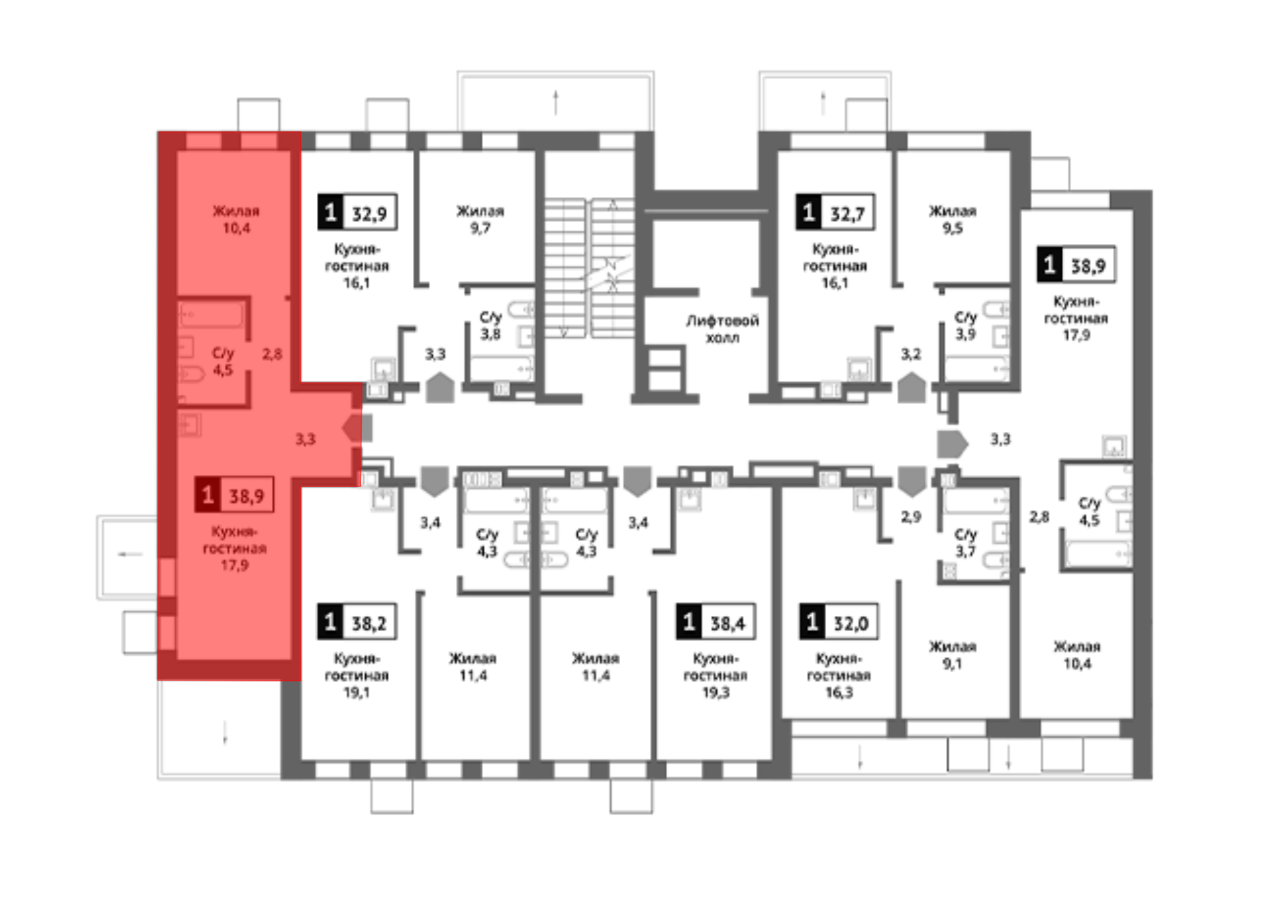 7 430 319 ₽2-к.квартира, 32.9 м², 6 эт.
