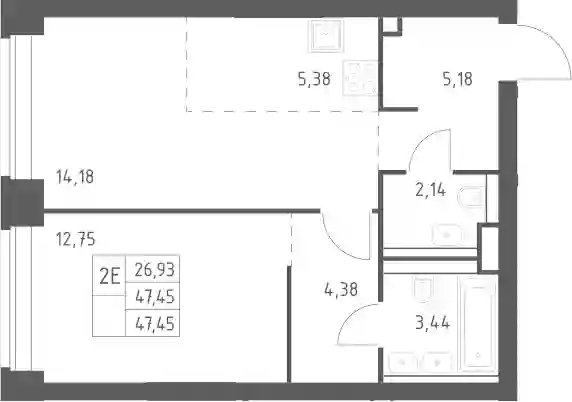 40 195 559 ₽2-к.квартира, 47.45 м², 14 эт.