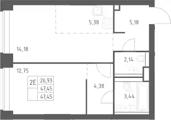 42 218 780 ₽2-к.квартира, 47.45 м², 26 эт.