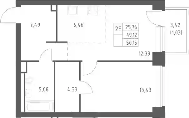 40 256 057 ₽2-к.квартира, 49.12 м², 12 эт.