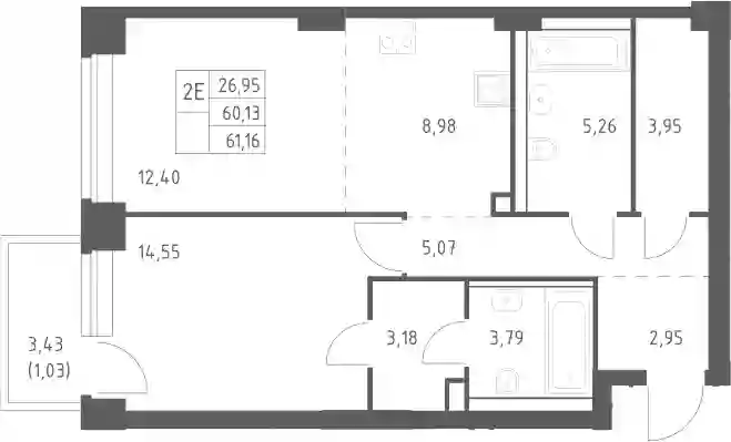 54 518 903 ₽3-к.квартира, 61.03 м², 9 эт.
