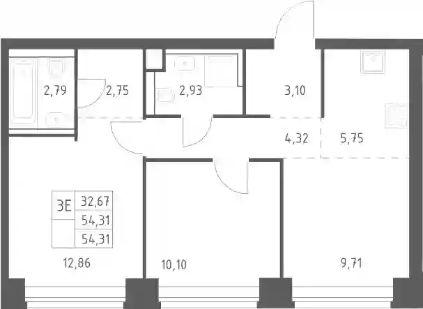 43 960 252 ₽3-к.квартира, 54.31 м², 28 эт.