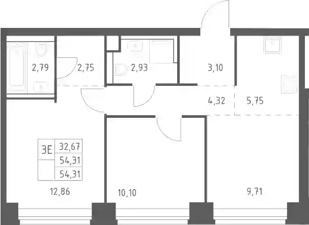 43 960 252 ₽3-к.квартира, 54.31 м², 28 эт.