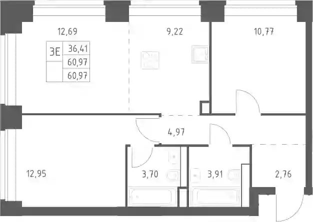 54 451 697 ₽3-к.квартира, 60.97 м², 14 эт.