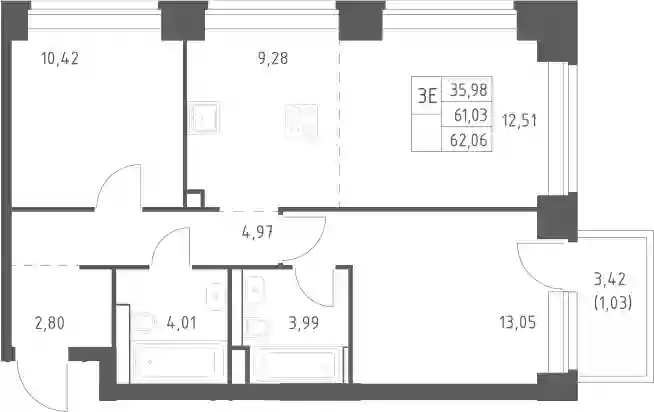 54 518 903 ₽3-к.квартира, 61.03 м², 9 эт.