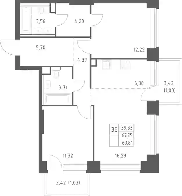 71 294 179 ₽3-к.квартира, 68.81 м², 26 эт.