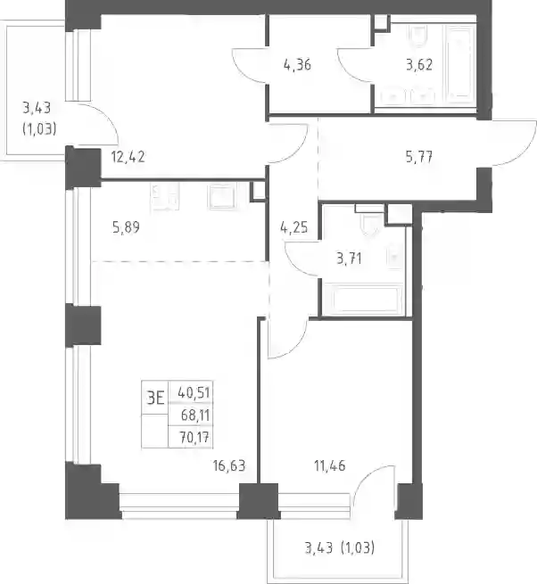 57 306 663 ₽3-к.квартира, 72.34 м², 27 эт.