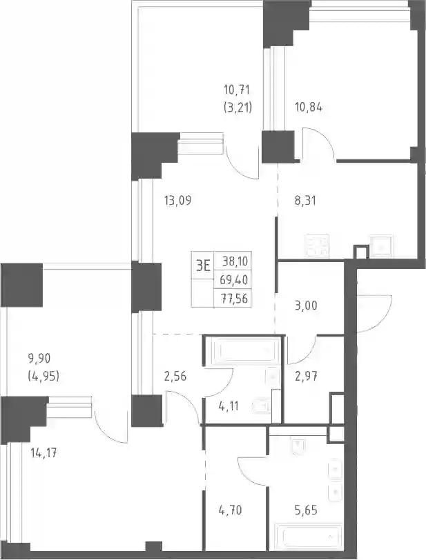 71 294 179 ₽3-к.квартира, 68.81 м², 26 эт.
