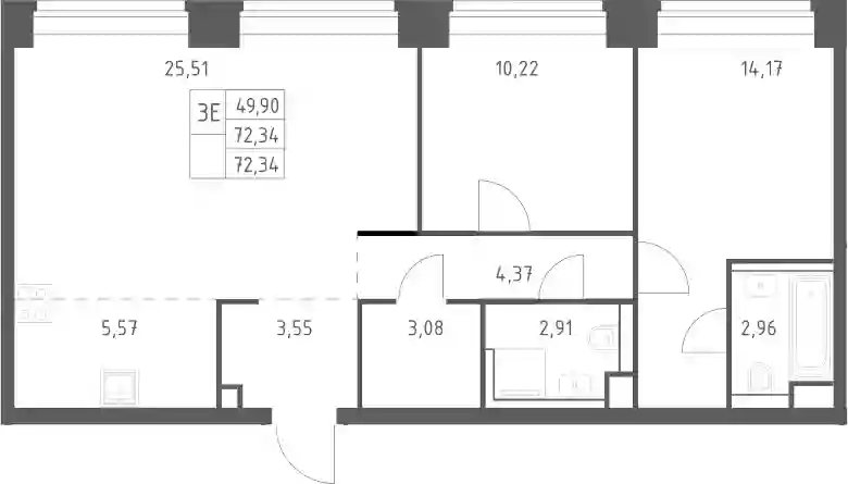 57 044 864 ₽3-к.квартира, 72.34 м², 24 эт.