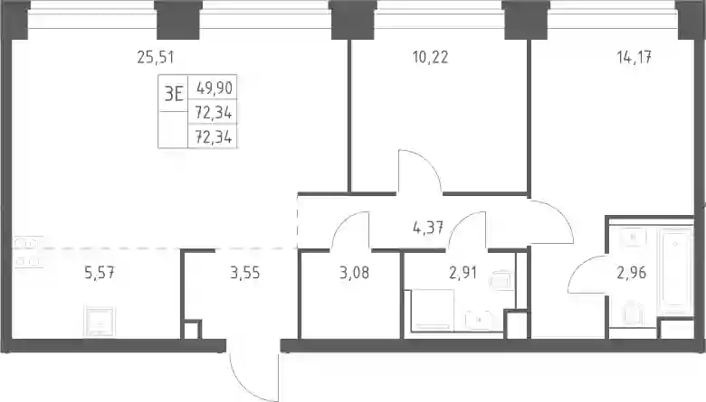 57 044 864 ₽3-к.квартира, 72.34 м², 24 эт.
