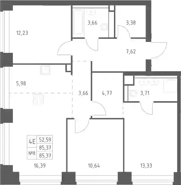 63 397 532 ₽4-к.квартира, 79.55 м², 8 эт.
