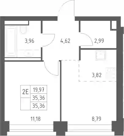 29 461 922 ₽2-к.квартира, 35.56 м², 18 эт.