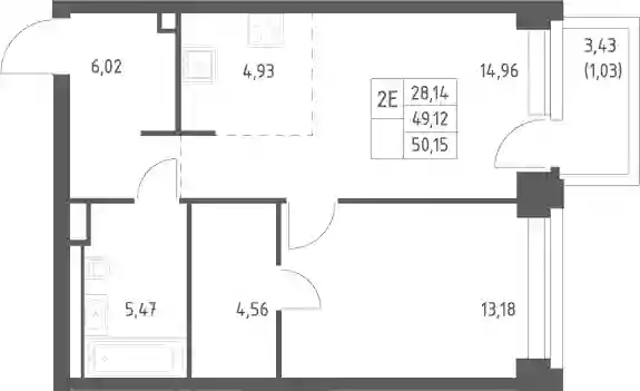 46 531 843 ₽2-к.квартира, 48.93 м², 13 эт.