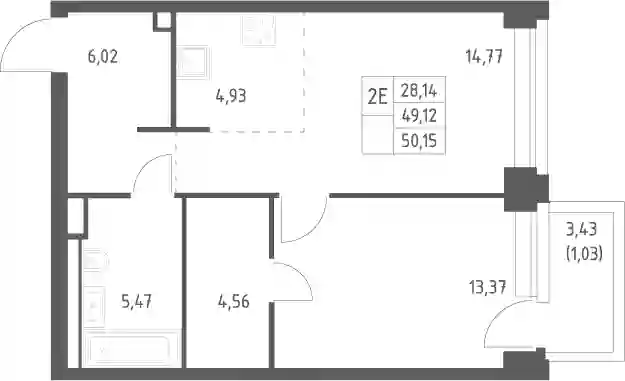 45 377 437 ₽2-к.квартира, 48.93 м², 13 эт.