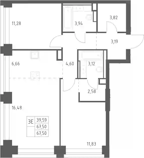56 687 580 ₽3-к.квартира, 67.5 м², 16 эт.