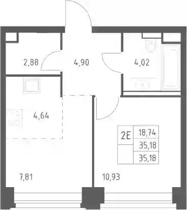 2-к.квартира, 35.18 м², 4 эт. в ЖК NOVA Корпус 3