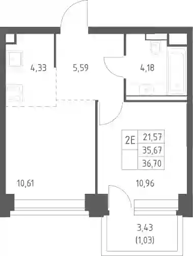 36 944 001 ₽2-к.квартира, 36.57 м², 25 эт.