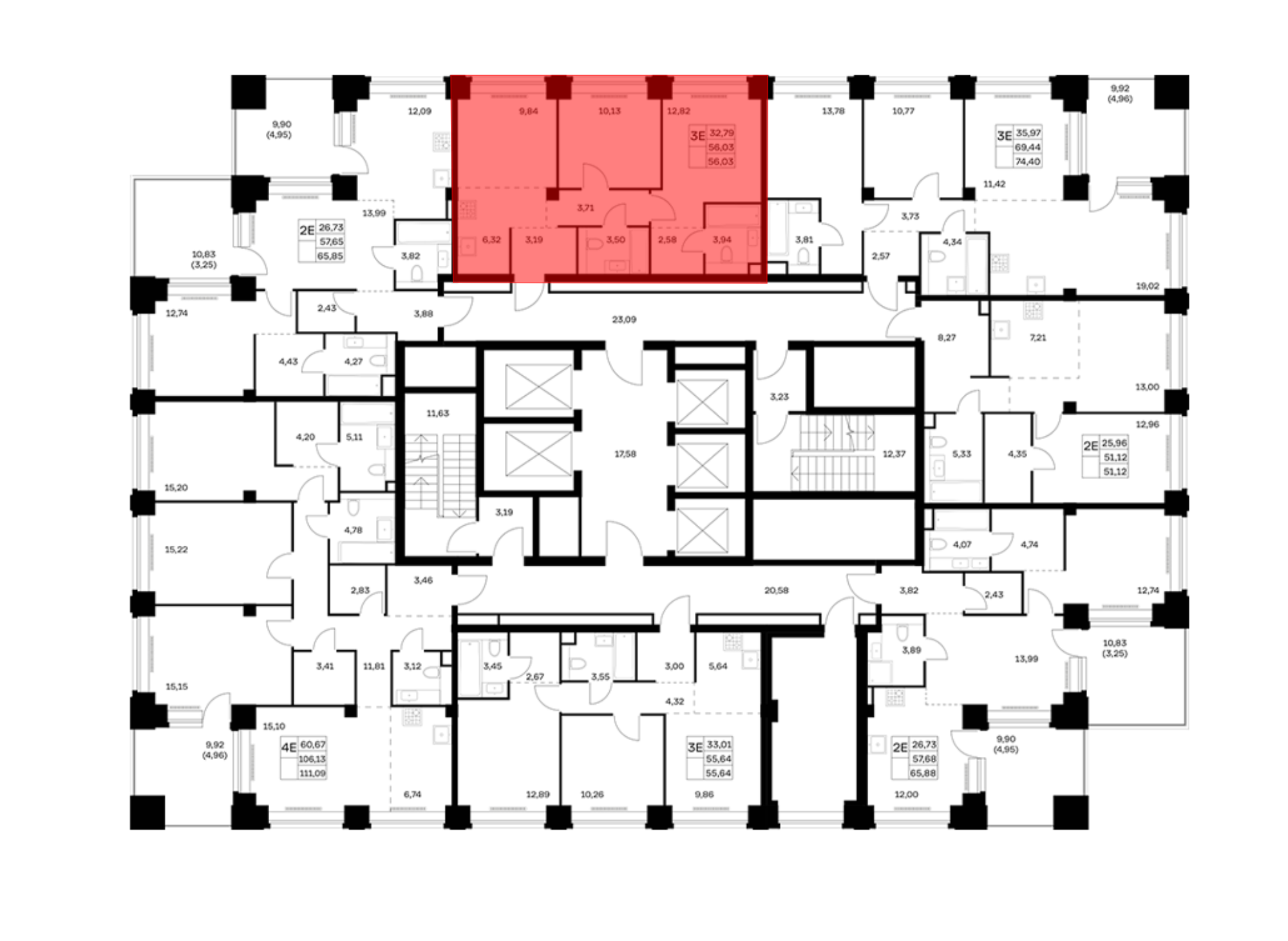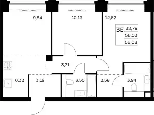 3-к.квартира, 56 м², 32 эт. в ЖК NOVA Корпус 3