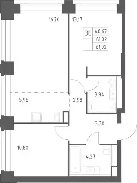52 011 861 ₽3-к.квартира, 60.97 м², 27 эт.