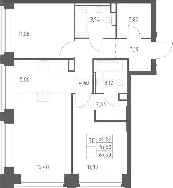 58 493 542 ₽3-к.квартира, 67.5 м², 15 эт.